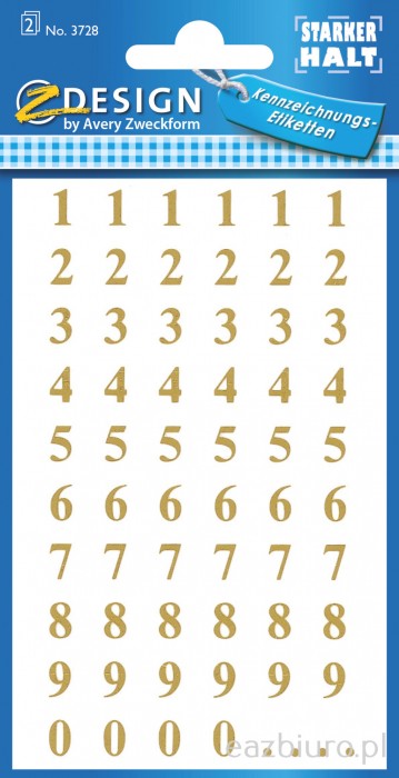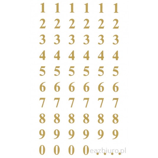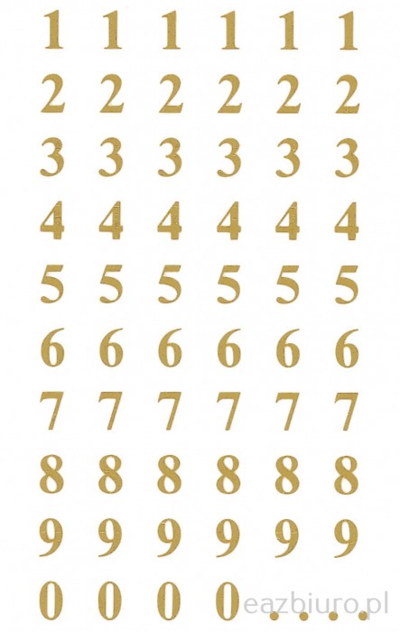 - Samoprzylepne naklejki z nadrukiem cyfr, na przezroczystej folii - Idealne do łatwego i indywidualnego znakowania różnych przedmiotów w biurze, szkole, czy domu - Kolor: złoty