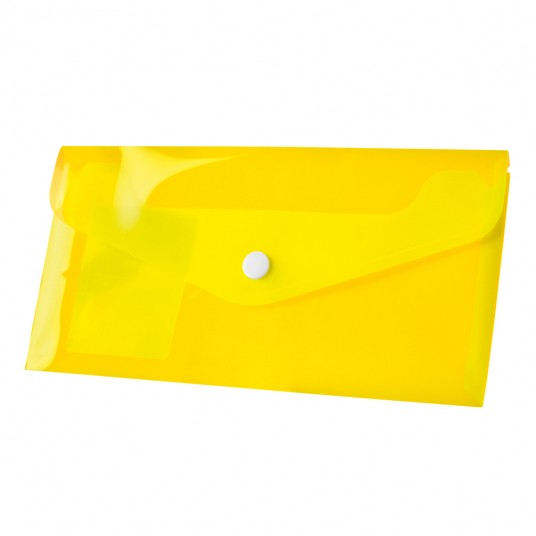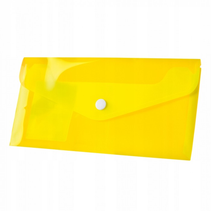 - Koperta PP na zatrzask, mieszcząca format DL. - Wymiary koperty: 220x110 mm, grubość tworzywa: 0,14 mm. - Dostępna w czterech kolorach (niebieski, czerwony, pomarańczowy, żółty).
