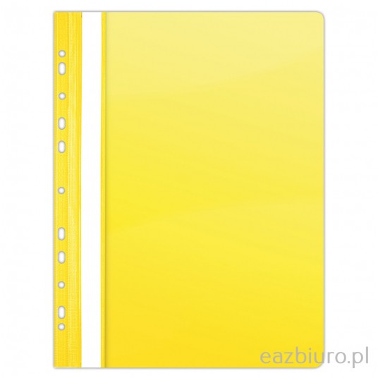 - Wykonany z PVC, twardy - Strona przednia transparentna - grubość: 150µm; tylna kolorowa: 160µm - Mieści ok. 200 kartek - Posiada 11 dziurek do wpięcia do segregatora - Wymienny, dwustronnie zapisywalny pasek brzegowy - Format: A4 - Rozmiar: 235x310mm - Kod kreskowy na każdej sztuce - Kolor żółty