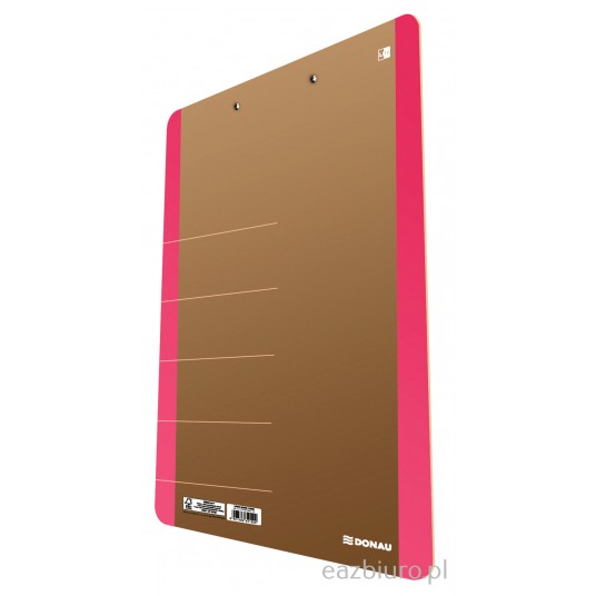 - Podkładka do pisania bez okładki - Wykonana z tektury o grubości 1,8mm - Mechanizm zaciskowy z drutem - Zaokrąglone rogi - Certyfikat FSC® gwarantuje, że surowiec potrzebny do produkcji wyrobu pochodzi z lasów zarządzanych w odpowiedzialny sposób; promuje on trwałą gospodarkę leśną opartą o najwyższe światowe standardy w dziedzinie ochrony przyrody i gwarantuje legalność pochodzenia surowca - Gramatura: 900g/m2 - Format: A4 - Wymiary: 235x320mm - Kolor: różowy