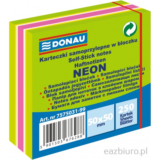 - Karteczki samoprzylepne w neonowych i pastelowych kolorach, idealne do pozostawienia wiadomości zarówno w biurze jak i domu - Ilość karteczek: 250 w rozmiarze 50x50mm - Możliwość przeklejania karteczek - Klej usuwalny za pomocą wody - Indywidualnie zabezpieczona folią z charakterystycznym czerwonym paskiem ułatwiającym otwieranie - Kolor: mix zielony