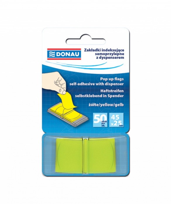 - Idealne do pozostawienia wiadomości zarówno w biurze jak i domu - Ilość zakładek: 1x50 w rozmiarze 25x45mm - Wykonane z folii PP o grubości 60µm - Wielorazowe, cienkie - Można po nich pisać cienkopisami lub markerami - Dyspenser wykonany z PP - Zakładki w intensywnych, żywych kolorach - Klej usuwalny za pomocą wody - Kolor: żółty
