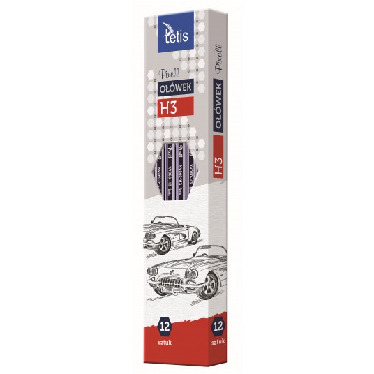 - Ołówek drewniany, heksagonalny kształt- Opakowanie: pudełko 12 sztuk- Twardość ołówka: H3