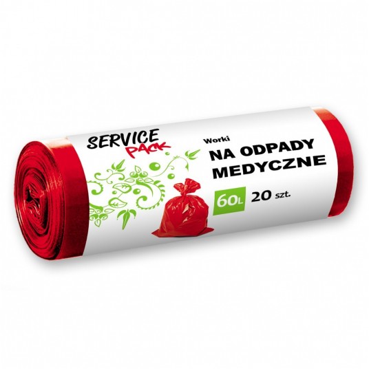 - Worki na śmieci Service Pack wykonane są z regranulatu pochodzącego z recyklingu odpadów foliowych i nadają się do ponownego recyklingu - Worki przeznaczone do pakowania odpadów medycznych - Wykonane z folii LDPE z regranulatu, dzięki czemu są wytrzymałe na obciążenia i przypadkowe rozdarcia - Posiadają zgrzew boczny, co znacznie zwiększa wytrzymałość i szczelność dna worka - Przeznaczone na odpady medyczne, sanitarne - Do wykorzystania przez szpitale, przychodnie, apteki, gabinety lekarskie - Posiadają tzw. boczny zgrzew dna - Wykonane są z folii LDPE - Kolor czerwony - Ekologiczne - worki na śmieci z regranulatu - Pojemność: 60 litrów - Długość worka: 70 cm - Szerokość worka: 60 cm - Rodzaj foli: LDPE z regranulatu - Grubość folii: 21 µm - 20 sztuk na rolce