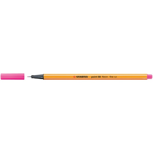 - STABILO point 88 to najpopularniejszy cienkopis w Europie - Idealny do pisania, rysowania, podkreślania, kolorowania i pracy z linijką - Dostępny jest aż w 47 kolorach, dzięki czemu nadaje się też do tworzenia map myśli i kolorowych notatek, które ułatwiają zapamiętywanie - Mocna, oprawiona w metal końcówka jest odporna na złamania i rozwarstwienia, co gwarantuje wysoki komfort pisania aż do całkowitego wyczerpania tuszu - Dodatkowe zalety to odporność na zasychanie (pozostawiony bez skuwki nie zasycha przez długi czas) i wentylowana skuwka co w przypadku jej nagłego połknięcia zabezpiecza przed uduszeniem - Grubość linii pisania 0,4 mm - Kolor różowy neonowy