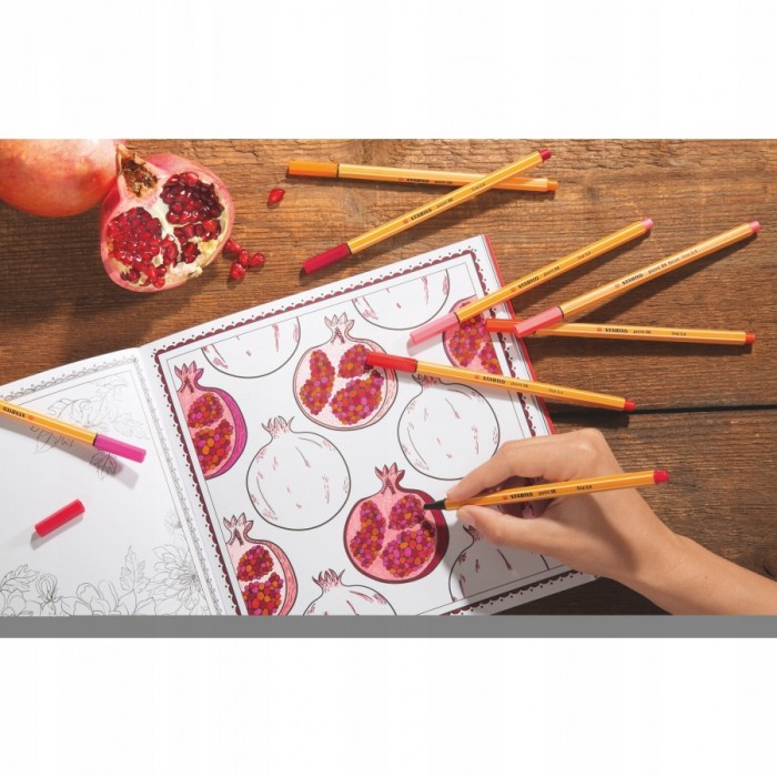 - STABILO point 88 to najpopularniejszy cienkopis w Europie. - Idealny do pisania, rysowania, podkreślania, kolorowania i pracy z linijką. - Dostępny jest aż w 47 kolorach, dzięki czemu nadaje się też do tworzenia map myśli i kolorowych notatek, które ułatwiają zapamiętywanie. - Mocna, oprawiona w metal końcówka jest odporna na złamania i rozwarstwienia, co gwarantuje wysoki komfort pisania aż do całkowitego wyczerpania tuszu. - Dodatkowe zalety to odporność na zasychanie (pozostawiony bez skuwki nie zasycha przez długi czas) i wentylowana skuwka co w przypadku jej nagłego połknięcia zabezpiecza przed uduszeniem. - Grubość linii pisania 0,4 mm. - Kolor ciemna zieleń.