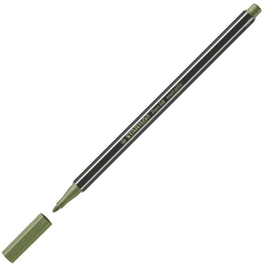 - STABILO pen 68 metallic to flamastry w błyszczących, metalicznych kolorach. - Idealne do pisania, ozdabiania i innych prac plastycznych. - Mocne, kryjące kolory widoczne na jasnym i ciemnym tle. - Przykładowe zastosowanie: wypisywanie kart świątecznych, podpisywanie prezentów opisywanie albumów, rysowanie i kolorowanie tam gdzie potrzebny jest metaliczny efekt. - Grubość linii 1,4 mm. - Produkt należy przechowywać w pozycji poziomej. - Flamastry dostępne są w 8 kolorach. - Kolor zielony metaliczny.