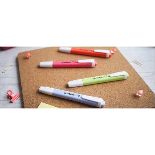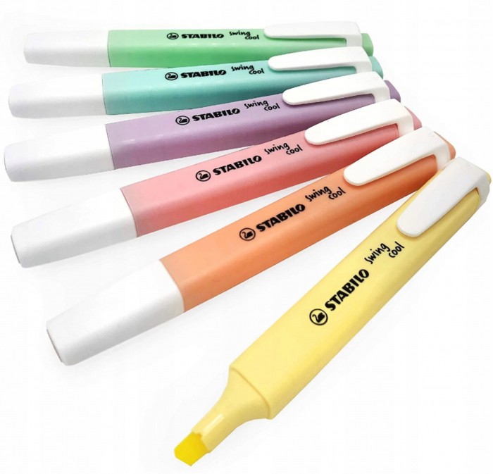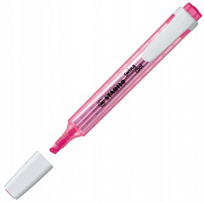- STABILO swing cool - zakreślacz dla dzieci, młodzieży i osób które podróżują - Kieszonkowy format zakreślacza z praktycznym klipsem do zaczepiania sprawia, że nie zajmuje dużo miejsca więc można go zawsze mieć przy sobie (w torbie, piórniku, kieszeni) - Technologia Anti-Dry-Out sprawia, że pozostawiony bez skuwki nawet prze 4 godziny nie zasycha - Grubość linii 1-4 mm - Dostępny w 8 kolorach - Kolor różowy