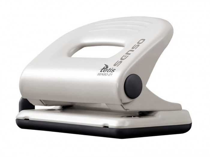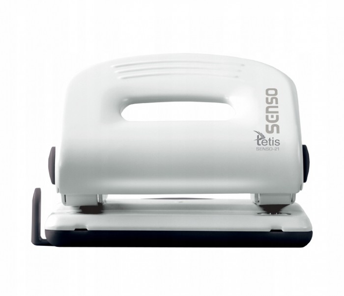 - Metalowy dziurkacz biurowy z wykończeniami z tworzywa sztucznego