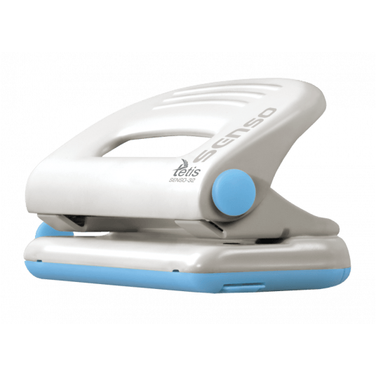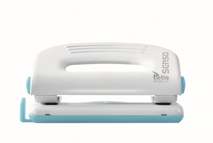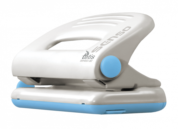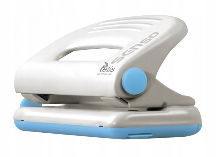 - Metalowy dziurkacz biurowy z wykończeniami z tworzywa sztucznego