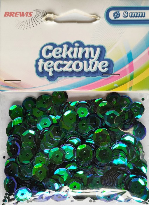 - Cekiny w dwóch średnicach (6mm i 8mm) i w czterech rodzajach: błyszczące, hologramowe, matowe i tęczowe