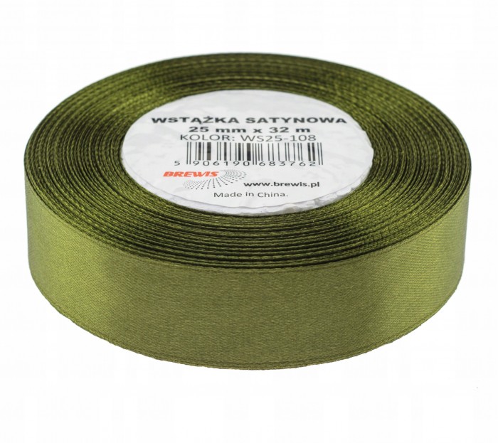 Wstążka Brewis satynowa 25mm 32m oliwka