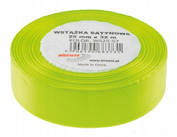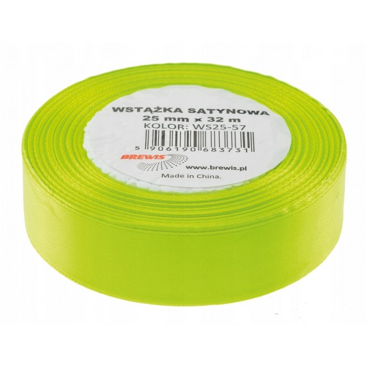 Wstążka Brewis satynowa 25mm 32m zielony neon