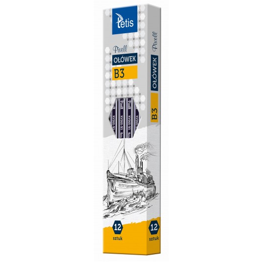 - Ołówek drewniany, heksagonalny kształt- Opakowanie: pudełko 12 sztuk- Twardość ołówka: B3