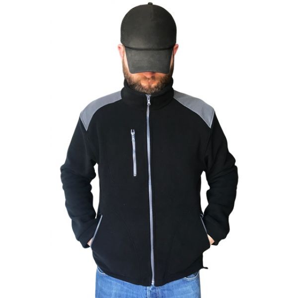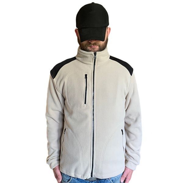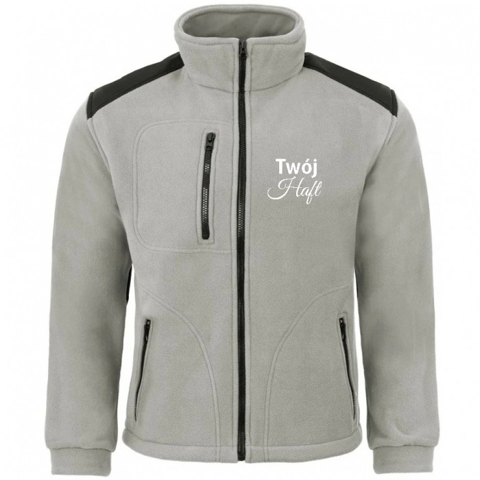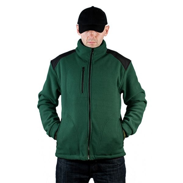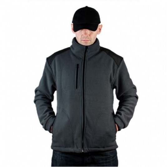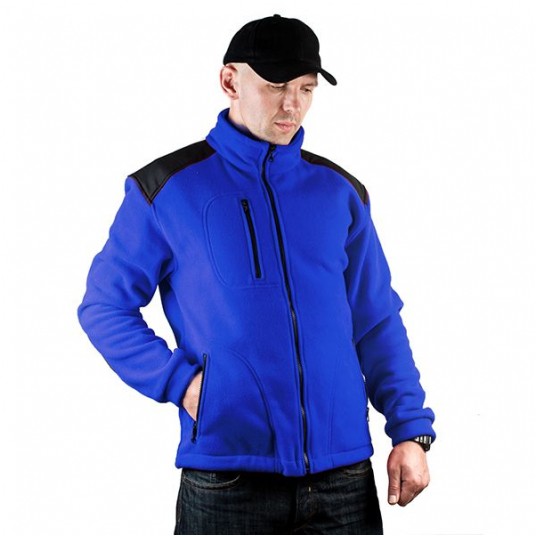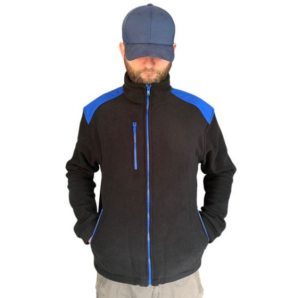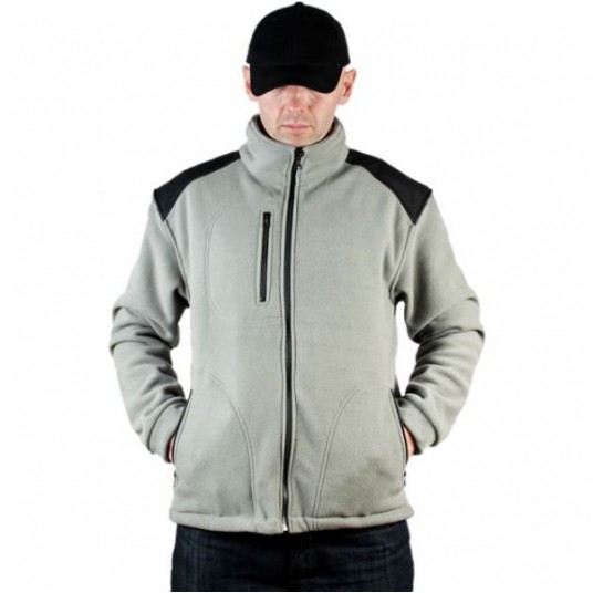 Polar jest gruby i posiada bardzo dobre właściwości cieplne, przyjemny w dotyku, 2 kieszenie zasuwane zamkami błyskawicznymi oraz dodatkowa kieszeń na piersi z zamkiem.