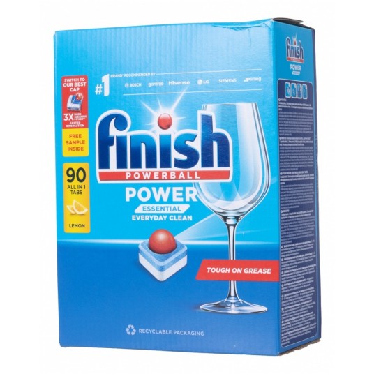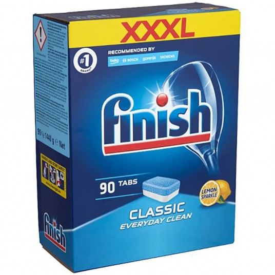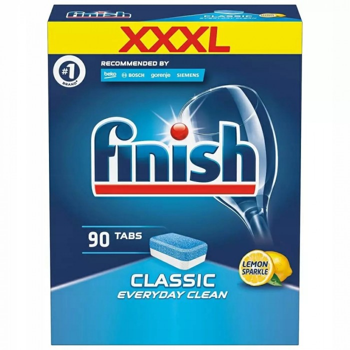 - Finish Classic tabletki do zmywarki 90 szt - Wielofunkcyjny produkt, który idealnie usuwa nawet uporczywy brud taki. - Dzięki mocy Powerball usuwają przypalone resztki jedzenia i nadają naczyniom olśniewający blask bez smug. - Proste w użyciu. - Brak konieczności dodatkowego rozpakowywania. - Tabletki zapewniają ochronę zarówno szklanym, jak i srebrnym naczyniom pozostawiając je lśniące. - Zapach cytryny. - Waga: 1440g.