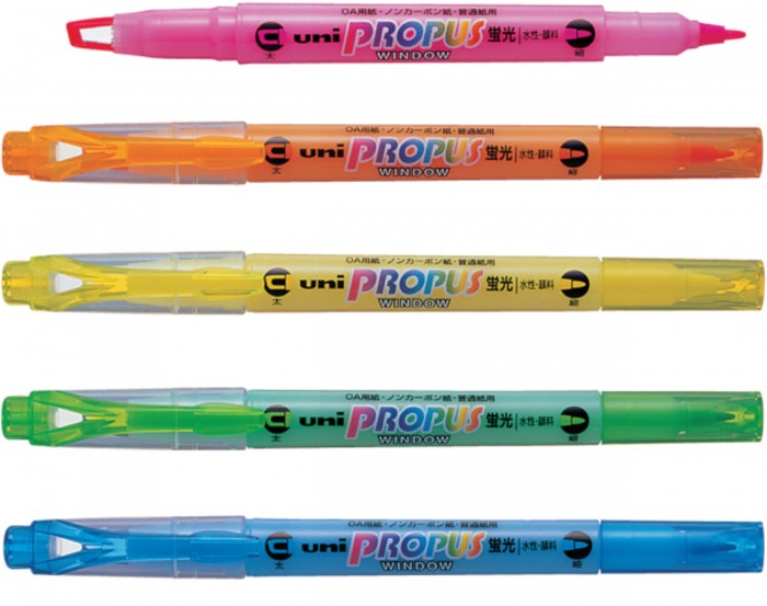 - Zakreślacz UNI PUS-102T z dwoma końcówkami – jedna z końcówek posiada okienko umożliwiające „śledzenie” zaznaczanego tekstu - Do zaznaczania i podkreślania na każdym papierze (również faksowym i kredowym - Dwie grubości końcówek po obu stronach produktu - Grubość linii pisania: ok. 4 mm i ok. 0,6 mm