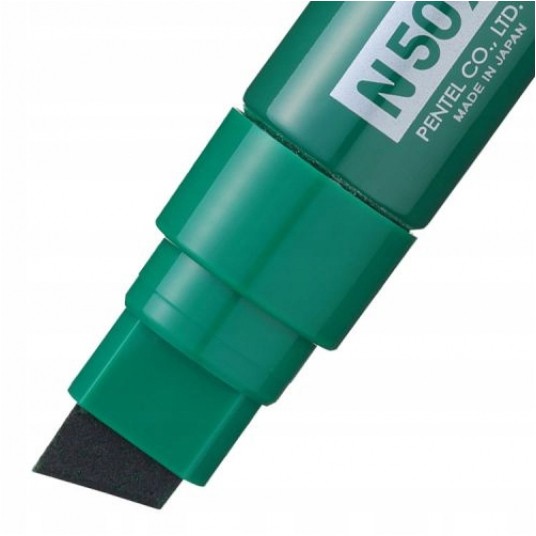 - Marker permanentny z wyjątkowo grubą, ściętą końcówką, która pozwala na pisanie wyraźnych liter, znaków oraz symboli.