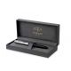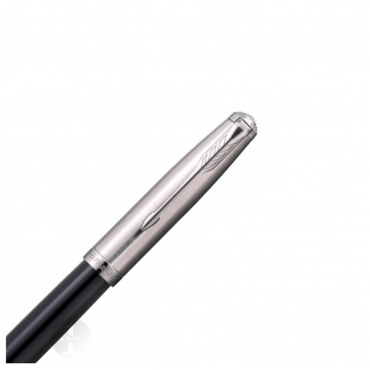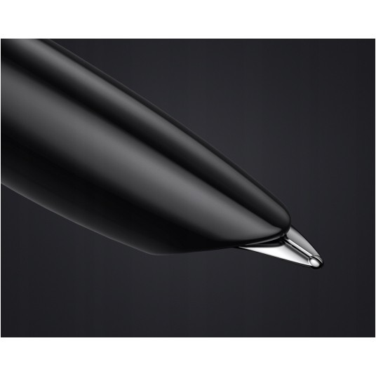 Cechy pióra: - Stalówka: stal szlachetna - Pierścień: wykończony palladem - Część przednia: czarna żywica - Nasadka: Ocynkowana stal szlachetna + wykończenie Palladem - Korpus: czarna żywica - Rodzaj stalówki: F