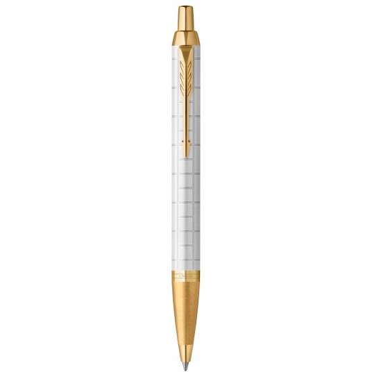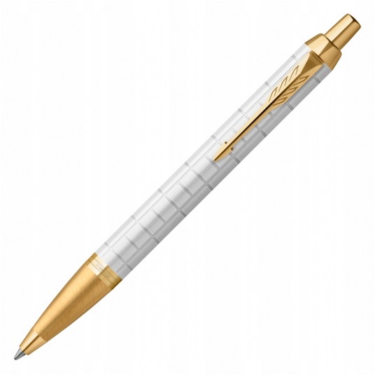 - Stylowy długopis Parker IM Premium Perłowy GT to produkt piśmienniczy jednej z najbardziej popularnych i cenionych marek. - Idealnie wpisuje się on w filozofię firmy, wnosząc nową jakość oraz zapewniając doskonały styl pisania. - Jest to długopis, który zapewnia zarówno wygodne pisanie, jak i doskonały wygląd. - Dzięki temu przyjemność pisania jest podwójna, bo z jednej strony podziwiać możesz swobodę, z jaką długopis sunie po kartce i kreśli na niej znaki, z drugiej zaś Twój zachwyt wzbudzać będzie doskonały wygląd nowoczesnego długopisu. - Wybierz go, jeśli kochasz klasyczny styl w nowoczesnym wydaniu, jest on bowiem doskonałym ucieleśnieniem takiego połączenia. - Subtelny wygląd długopisu to efekt połączenia rzadko spotykanego koloru pióra, czyli koloru perłowego z delikatnymi zdobieniami ze złota oraz z cyzelowanym wzorem w kratkę. - Efekt jest zadziwiający, bowiem długopis prezentuje się szalenie elegancko i szlachetnie. - Dzięki temu może stać się on ulubionym długopisem pań i panów, stawiających na ponadczasowe, lecz oryginalne zdobnictwo.