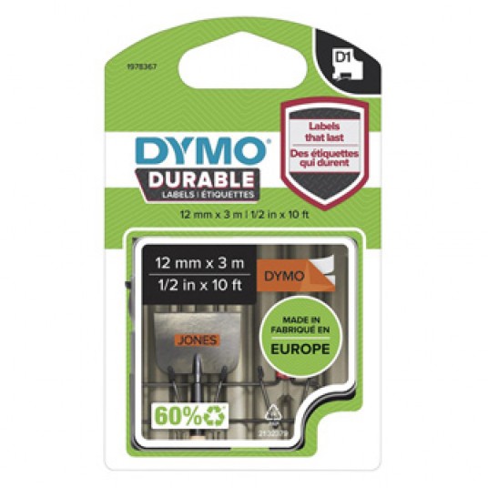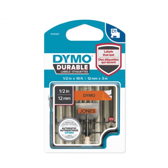 - Trudne powierzchnie wymagają bardziej wytrzymałych i trwalszych etykiet niż etykiety standardowe. - DYMO D1 Durable przylegają do powierzchni dzięki zastosowaniu kleju przemysłowego, dlatego m.in. nie odklejają się, nie ścierają i są trwałe nawet w przypadku działania światła słonecznego, ciepła, wilgoci i domowych środków czyszczących. - DYMO D1 Durable są doskonałe do etykietowania w kuchniach, sprzętu sportowego, w miejscach do przechowywania na zewnątrz i nie tylko. - Szerokość: 12 mm - Długość: 3 m - Kolor napisu: czarny - Kolor tła: pomarańczowy - Właściwości: trwale przylegają do różnych powierzchni dzięki zastosowaniu kleju przemysłowego - Odporne na temperaturę, promieniowanie UV, wilgoć, ujemne temperatury - Materiał odporny na zarysowania i zdzieranie zapewnia, że napisy będą dłużej czytelne - Doskonale sprawdzają się na kubkach, butelkach i pojemnikach na żywność - Idealne rozwiązanie do etykietowania w kuchniach, spiżarniach, schowkach gospodarczych, pralniach, warsztatach i garażach - Technologia druku termosublimacyjnego - nie jest wymagany tusz ani toner - Perforowana tylna warstwa ułatwia oddzielanie