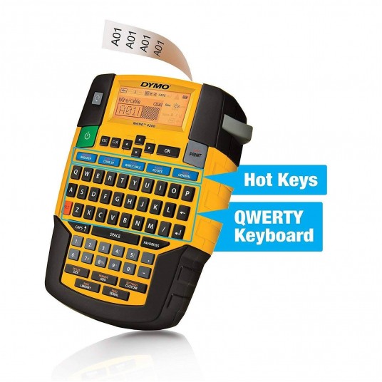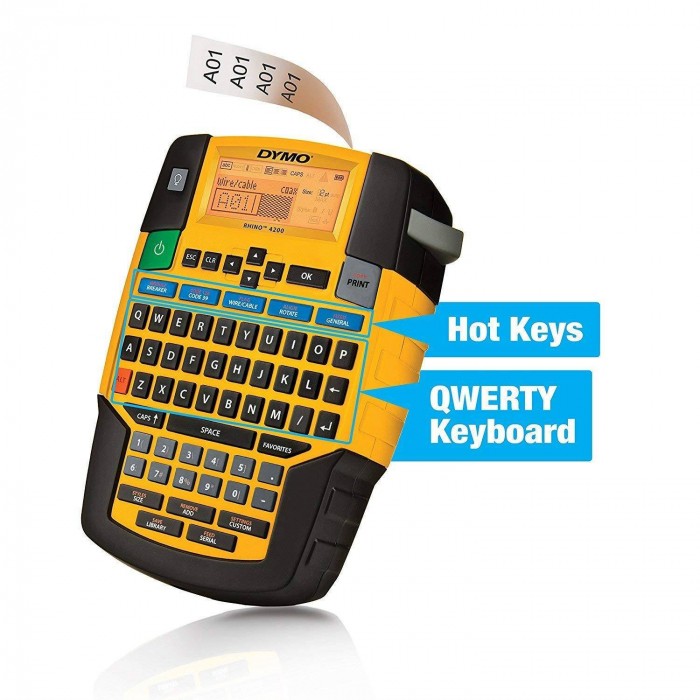 - Wyjątkowe klawisze skrótu DYMO automatycznie zmieniają rozmiar, rozmieszczenie i format etykiet do przewodów i kabli, przyłączy, modułów, tablic połączeń, zastosowań poziomych i o stałej długości. - Wstępnie zaprogramowana biblioteka symboli zawiera symbole przemysłowe, znaki interpunkcyjne, symbole walut i ułamki. - Duży wyświetlacz z prezentacją wielu etykiet - Duży, dwuliniowy wyświetlacz - Podświetlenie ułatwiające odczyt - Zintegrowany, gumowy uchwyt antypoślizgowy - Zapis/przywoływanie ponad 100 formatów etykiet - Drukuje kody paskowe Code 39 i Code 128 na etykietach 19 mm - Używa łatwych w rozdzielaniu etykiet RHINO z silnym klejem, wykonanych z 5 materiałów - Zasilana 6 bateriami AA (niedołączone) lub opcjonalnym, szybko się ładującym akumulatorem litowo-jonowym. W - urządzeniach DYMO zaleca się używanie wyłącznie baterii alkalicznych Duracell. - Funkcja automatycznego wyłączania wydłuża czas pracy baterii - W zestawie jedna biała taśma winylowa 12 mm