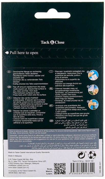 - Masa mocująca jest odpowiednia do różnych celów: do użytku w domu, szkole, pracy i projektach kreatywnych. - Jest w postaci łatwo odklejanych prostokątów, odpowiednia do tymczasowego nalepienia informacji, plakatów, planów itp. - Jest dostępna w białym kolorze. - Opakowanie kartonowe, 50 g.