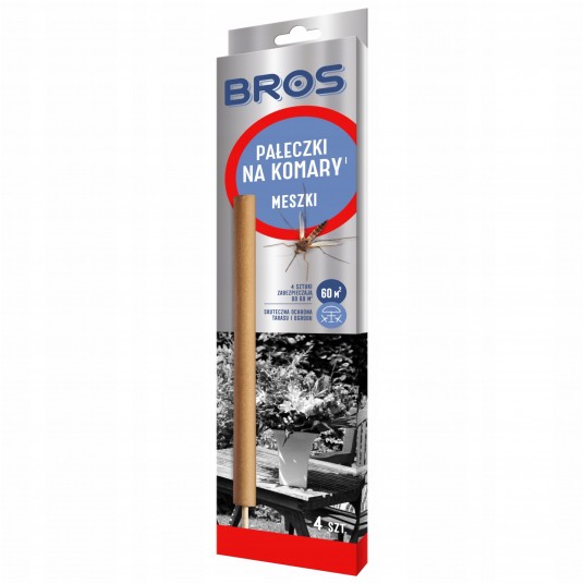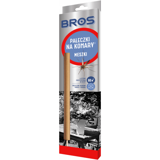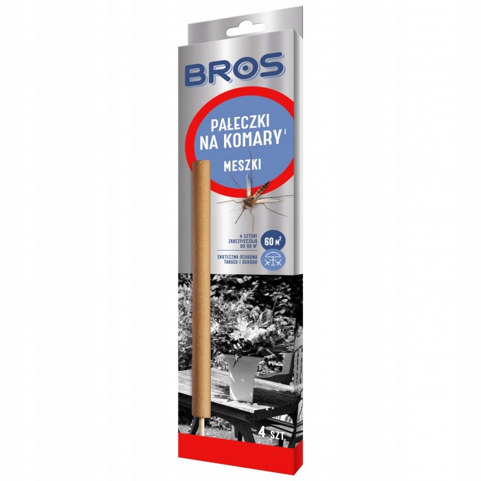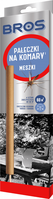 - Pałeczki na komary BROS działają w ten sposób, że wydzielający się podczas żarzenia pałeczki dym, zwalcza dokuczliwe komary, meszki oraz inne drobne insekty - Dym ten także wpływa odstraszająco, dzięki czemu chroni otoczenie przez długi czas - Pałeczki na komary BROS zostały stworzone z myślą o stosowaniu na zewnątrz pomieszczeń, na tarasach, w ogrodach, na balkonie - Pałeczki na komary BROS to doskonałe rozwiązanie dla wszystkich osób które chcą miło spędzić czas na świeżym powietrzu, bez dokuczliwych insektów - UWAGA: Produkt biobójczy należy używać z zachowaniem szczególnych środków ostrożności. Przed użyciem należy przeczytać etykietę i ulotkę informacyjną - Opakowanie: 4 sztuki