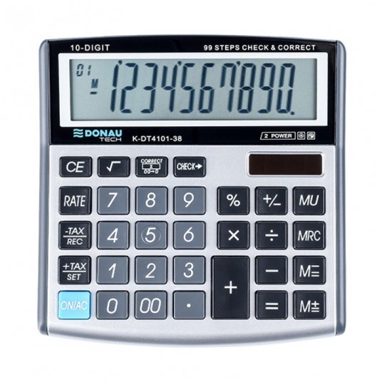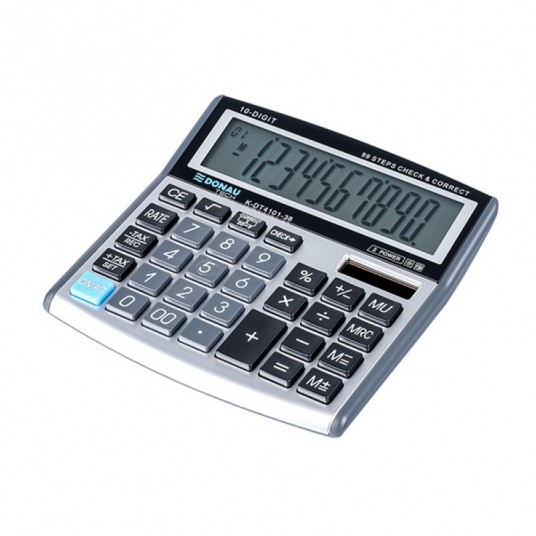 Kalkulator biurowy Donau tech, 10-cyfrowy wyświetlacz, 136x134x28 mm, srebrny
