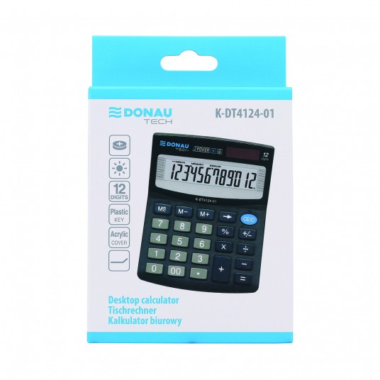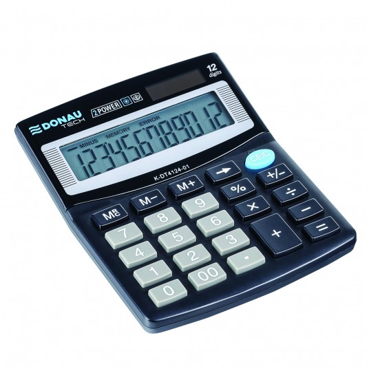 - Kalkulator biurowy z 12-cyfrowym wyświetlaczem z zasilaniem bateryjno -solarnym - Wymiary: 125 x 100 x 27 mm - Kasowanie ostatniej pozycji oraz obliczania procentów - Wyłącza się automatycznie - 5 lat gwarancji - Kolor: czarny