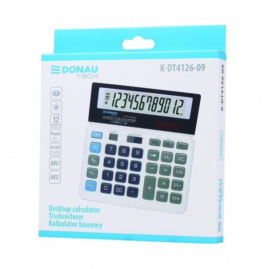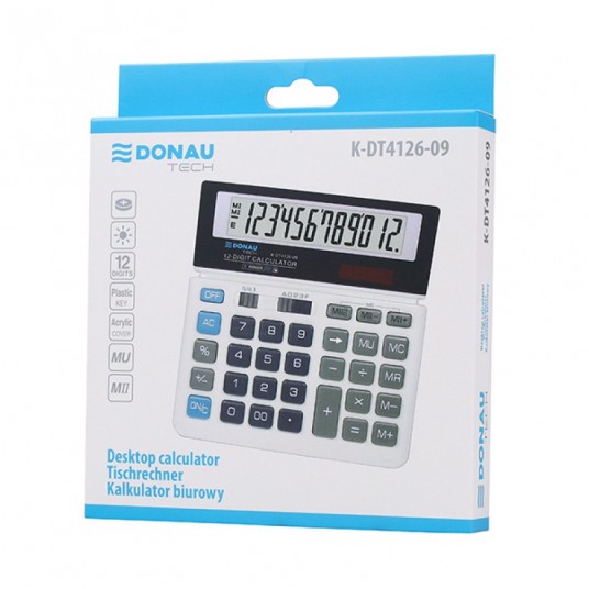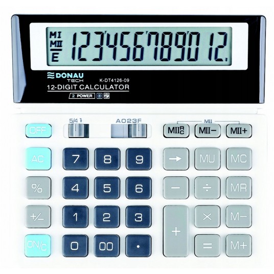 - Kalkulator biurowy z 12-cyfrowym wyświetlaczem z zasilaniem bateryjno-solarnym - Wymiary: 156 x 152 x 28 mm - Funkcja pierwiastka kwadratowego oraz obliczania procentów, obliczanie marży MU podwójne zero, kasowanie ostatniej pozycji, pamięć, ustawienie dziesiętne, zaokrąglanie wyniku - Wyłącza się automatycznie - 5 lat gwarancji - Kolor: biały