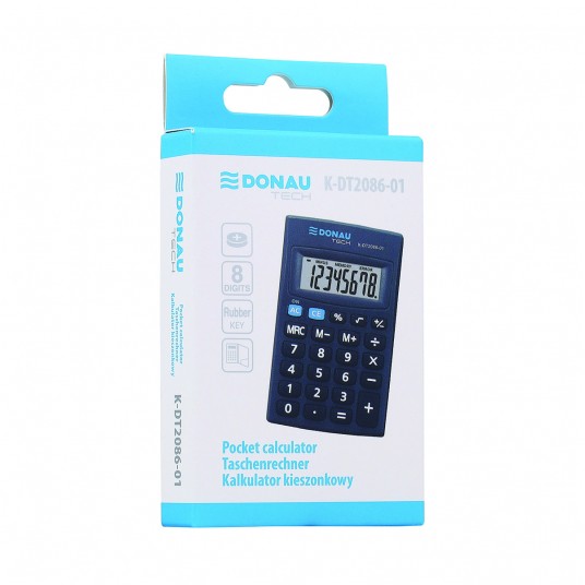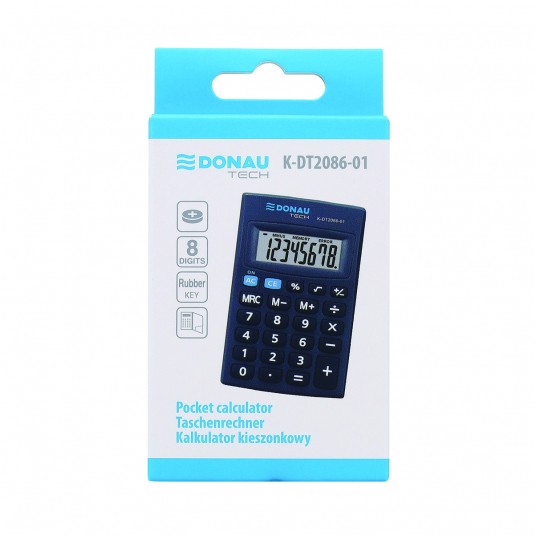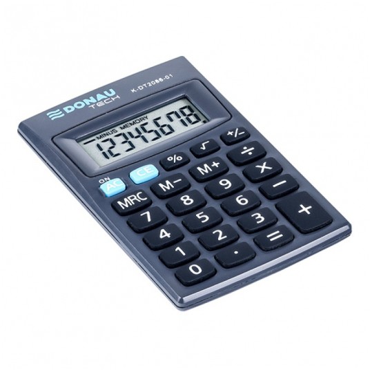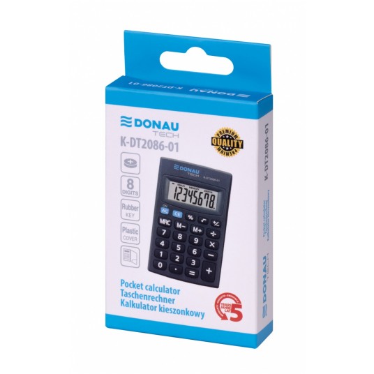 - kalkulator kieszonkowy z 8-cyfrowym wyświetlaczem z zasilaniem bateryjnym - wymiary: 127 x 104 x 8 mm - funkcja pierwiastka kwadratowego oraz obliczania procentów - wyłącza się automatycznie - 5 lat gwarancji - kolor: czarny