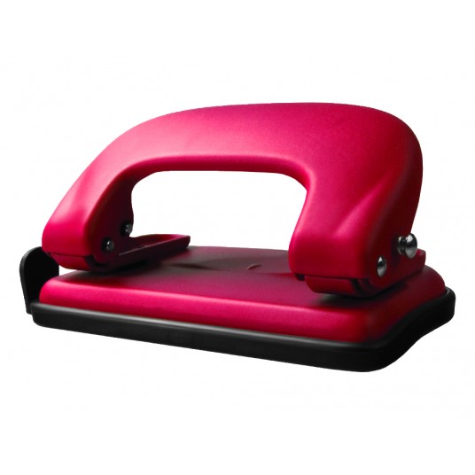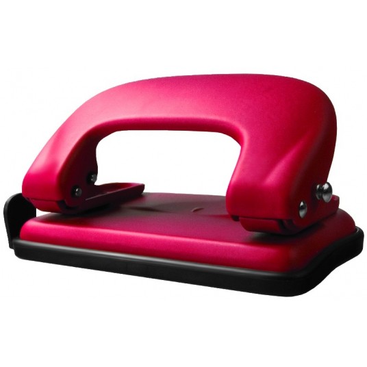 - Metalowy dziurkacz biurowy w matowej obudowie. - Posiada blokadę dźwigni, wskaźnik środka strony i ogranicznik formatu. - Dziurkuje do 10 arkuszy. - Kolor: czerwony