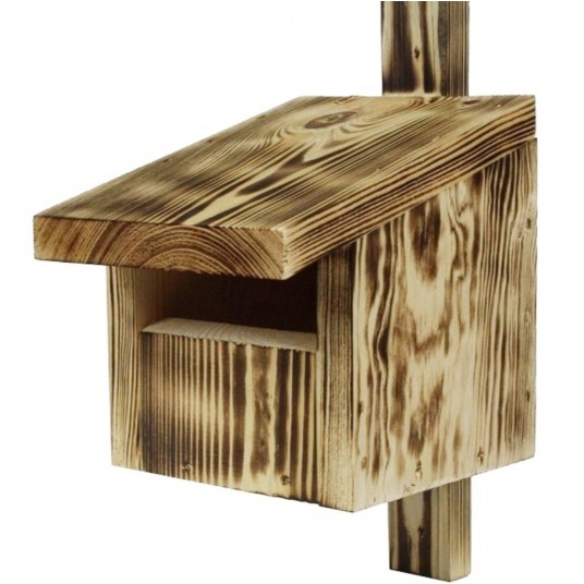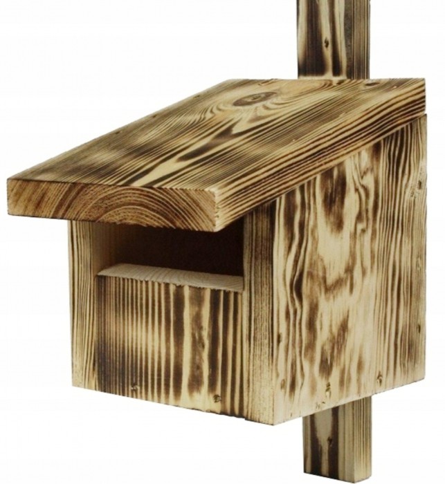 - Gatunki zasiedlające budki lęgowe typu TURDUS to kopciuszek, kos, muchołówka szara, pliszka siwa, rudzik, raszka, pustułka, sokół pustułka. - Stosuje się ją w lasach, parkach, ogrodach, zadrzewieniach śródpolnych, wszędzie tam gdzie jest choć trochę starszych drzew. - Kolor: drewno naturalne opalane. - Wewnętrzny wymiar dna: 11×11 cm. - Wysokość otworu wlotowego 5 cm. - Grubość desek 2 cm. - Szerokość 15 cm. - Długość 15 cm. - Wysokość całkowita 32 cm. - Metoda łączenia zszywka 40 mm.