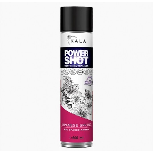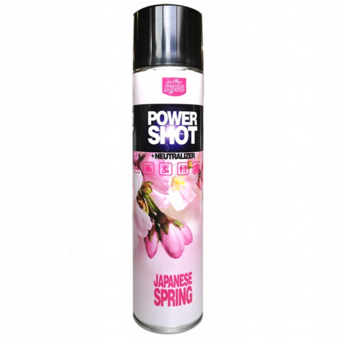 Neutralizator nieprzyjemnych zapachów, odświeżacz Kala POWER SHOT zapach JAPANESE SPRING (600 ml) to zniewalający, zapach kwitnącej wiśni połączony z nutą budzących się do życia drzew oraz rozkwitających wiosennych kwiatów, pobudzi zmysły i doda wiosennej życiowej energii. Romantyczna naturalna nuta zapachowa w perfumowanym wydaniu.
