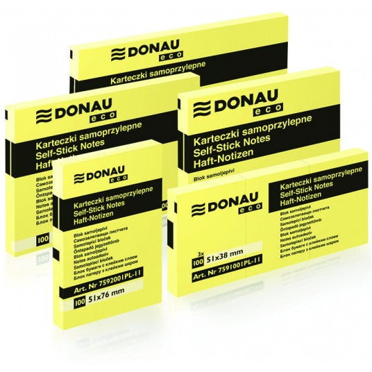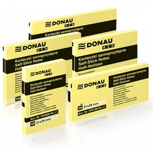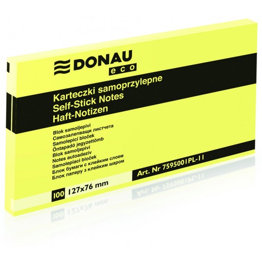 Bloczek samoprzylepny Donau eco 126x76 mm 100 kartek żółty