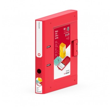 - Ekonomiczny segregator wykonany z kartonu o grubości 2,0mm i gramaturze 1200gsm, wyposażony w dolną listwę wzmacniającą - Pokryty matową folią polipropylenową (140µm) - Wewnątrz wyklejka papierowa z indeksem, tabelą formatów, mapą stref czasowych oraz miejscem na notatki - Dwustronna, wymienna etykieta grzbietowa w kratkę - Wzmocniony otwór na palec - Szerokość grzbietu: 50mm - Wymiary: 50x320x285mm - Kolor czerwony