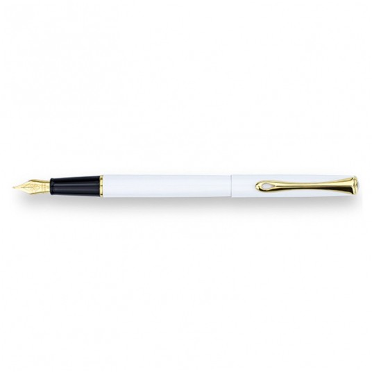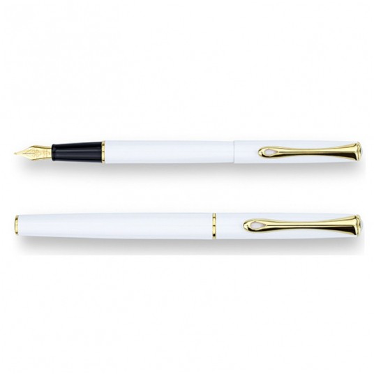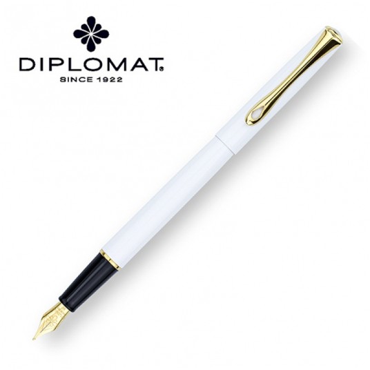 - Pióro wieczne niemieckiej marki DIPLOMAT z kolekcji Traveller, biały ze złotymi wykończeniami - Elegancka, smukła budowa - Ponadczasowe wzornictwo - Korpus w całości metalowy, pokryty lakierem w białym, błyszczącym kolorze - Łatwy chwyt, gładka niczym atłas i niezwykle trwała powłoka - Pióro wieczne z precyzyjnie wyciętą i wypolerowaną stalówką ze stali nierdzewnej - Klips skuwki i pierścienie są pozłacane - Wyposażone w nowy system zamykania skuwki „Soft click system” - Umieszczone w eleganckim metalowym opakowaniu - Podwójny system napełniania - Naboje atramentowe wymienne na konwerter - Grubość linii pisania: F - Kolor atramentu: niebieski - Kolor obudowy: biały/złoty - 5 lat gwarancji