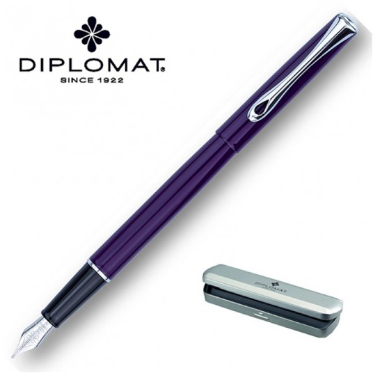 - Pióro wieczne niemieckiej marki DIPLOMAT z kolekcji Traveller, kolor fioletowy z chromowanymi wykończeniami - Elegancka, smukła budowa - Ponadczasowe wzornictwo - Korpus w całości metalowy, pokryty lakierem w fioletowym, błyszczącym kolorze - Łatwy chwyt, gładka niczym atłas i niezwykle trwała powłoka - Pióro wieczne z precyzyjnie wyciętą i wypolerowaną stalówką ze stali nierdzewnej - Klips skuwki i pierścienie pokryte warstwą chromu - Wyposażone w nowy system zamykania skuwki „Soft click system” - Umieszczone w eleganckim metalowym opakowaniu - Podwójny system napełniania - Naboje atramentowe wymienne na konwerter - Grubość linii pisania: F - Kolor atramentu: niebieski - Kolor obudowy: fioletowy - 5 lat gwarancji