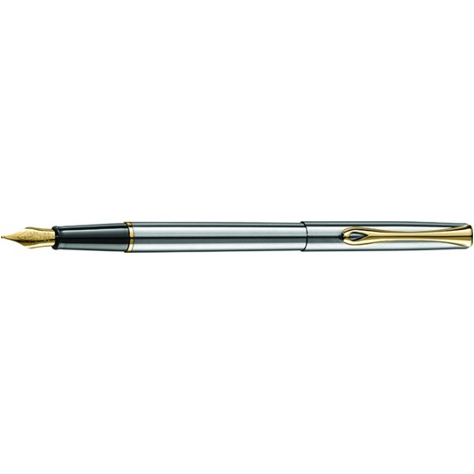 - Elegancka, smukła budowa - Ponadczasowe doświadczenie - Obudowa w całości metalowa - Łatwy chwyt, gładka niczym atłas i niezwykle trwała powłoka - Pióro wieczne z precyzyjnie wyciętą i wypolerowaną stalówką ze stali nierdzewnej - Grubość linii pisania: F - Kolor atramentu: niebieski - Kolor obudowy: stalowy/złoty - 5 lat gwarancji