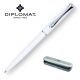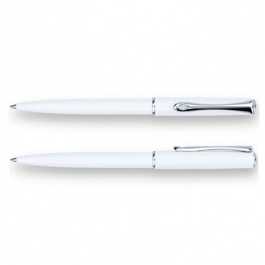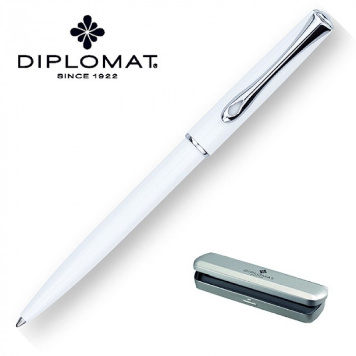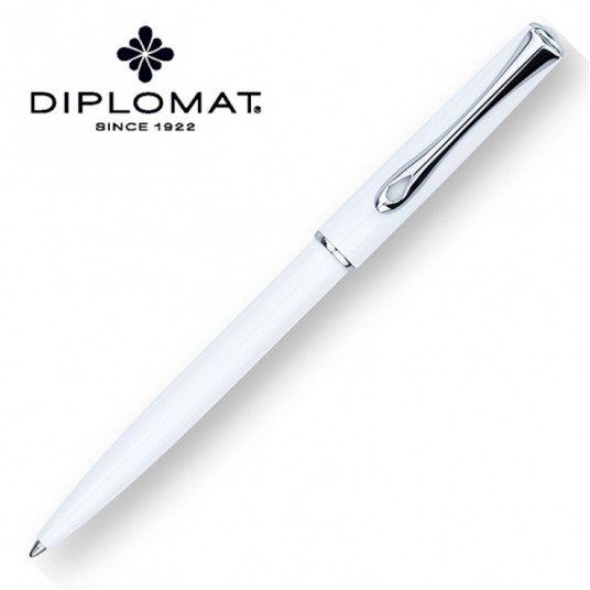 - Długopis niemieckiej marki DIPLOMAT z kolekcji Traveller, kolor biały z chromowanymi wykończeniami - Elegancka, smukła budowa - Ponadczasowe wzornictwo - Korpus w całości metalowy, pokryty lakierem w białym, błyszczącym kolorze - Łatwy chwyt, gładka niczym atłas i niezwykle trwała powłoka - Długopis z przyciskowym mechanizmem wysuwania wkładu - Klips i pierścienie pokryte warstwą chromu - Posiada wkład długopisowy typu king-size easyFLOW, który gwarantuje gładkie i płynne pisanie - Logotyp marki umieszczony na szczycie - Kolor atramentu: czarny - Kolor obudowy: biały/chromowany - 5 lat gwarancji