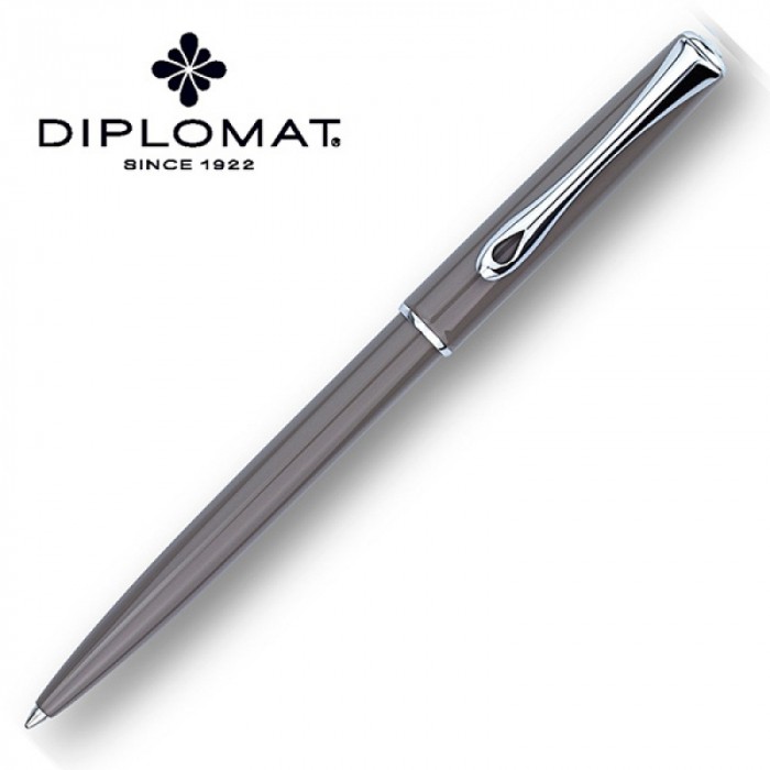 - Długopis niemieckiej marki DIPLOMAT z kolekcji Traveller, kolor szary z chromowanymi wykończeniami - Elegancka, smukła budowa - Ponadczasowe wzornictwo - Korpus w całości metalowy, pokryty lakierem w szarym, błyszczącym kolorze - Łatwy chwyt, gładka niczym atłas i niezwykle trwała powłoka - Długopis z przyciskowym mechanizmem wysuwania wkładu - Klips i pierścienie pokryte warstwą chromu - Posiada wkład długopisowy typu king-size easyFLOW, który gwarantuje gładkie i płynne pisanie - Logotyp marki umieszczony na szczycie - Możliwość grawerowania oraz nadruku metodą tampondruku - Kolor atramentu: czarny - Kolor obudowy: szary - 5 lat gwarancji
