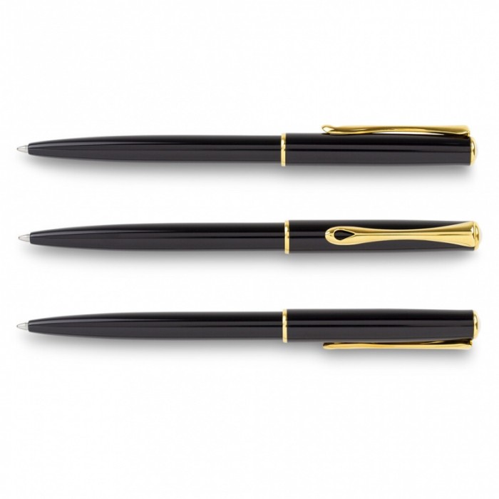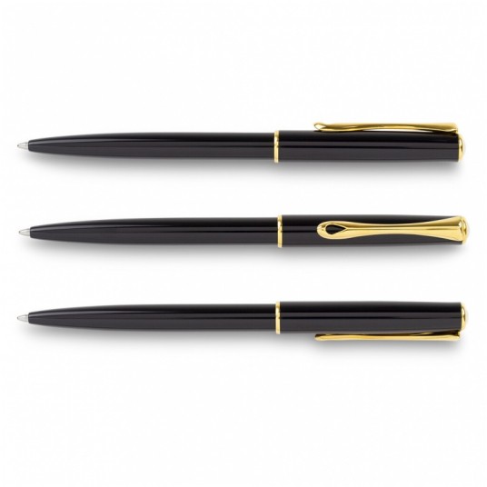 - Długopis niemieckiej marki DIPLOMAT z kolekcji Traveller, kolor czarny ze złotymi wykończeniami - Elegancka, smukła budowa - Ponadczasowe wzornictwo - Korpus w całości metalowy, pokryty lakierem w czarnym, błyszczącym kolorze - Łatwy chwyt, gładka niczym atłas i niezwykle trwała powłoka - Długopis z przyciskowym mechanizmem wysuwania wkładu - Klips i pierścienie są pozłacane - Posiada wkład długopisowy typu king-size easyFLOW, który gwarantuje gładkie i płynne pisanie - Logotyp marki umieszczony na szczycie - Możliwość grawerowania oraz nadruku metodą tampondruku - Kolor atramentu: czarny - Kolor obudowy: czarny/złoty