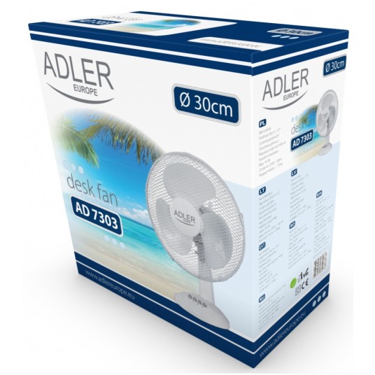 Wentylator Adler ad 7303, biurkowy, śr. 30cm, 70w, biały