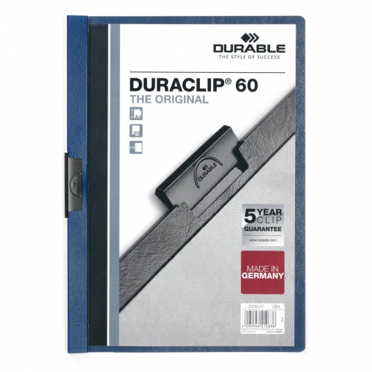 - skoroszyty A4 umożliwiające przechowywanie dokumentów bez potrzeby dziurkowania - zacisk wykonany ze specjalnej elastycznej stali - posiadają 5-letnią gwarancję na siłę docisku - przezroczysta okładka - pojemność: Duraclip 60 - 60 kartek