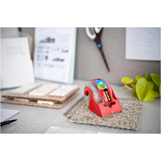 Mini dyspenser do taśm Scotch® (c.5020.d), w zestawie taśma pakową, 48mmx20,3m, czerwony