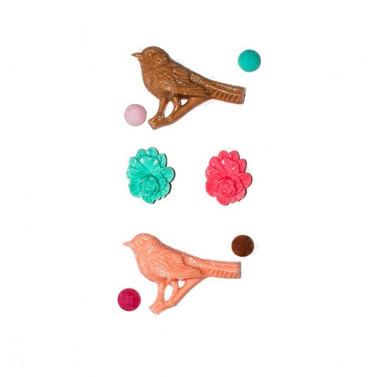 - Samoprzylepne ptaki i kwiaty z żywicy oraz dekoracyjne kryształki - Doskonałe do zdobienia projektów scrapbookingowych, kartek okolicznościowych, dekoracji do wystroju wnętrz, ozdobnego pakowania prezentów, samodzielnie tworzonej biżuterii oraz elementów garderoby - Doskonale komponują się z innymi produktami z kolekcji Tropical Dreams - Wymiary: ptaki: 4,4 cm x 2,8 cm; kwiaty: 2 cm; kryształki: 0,8 cm - Ilość: 8 sztuk