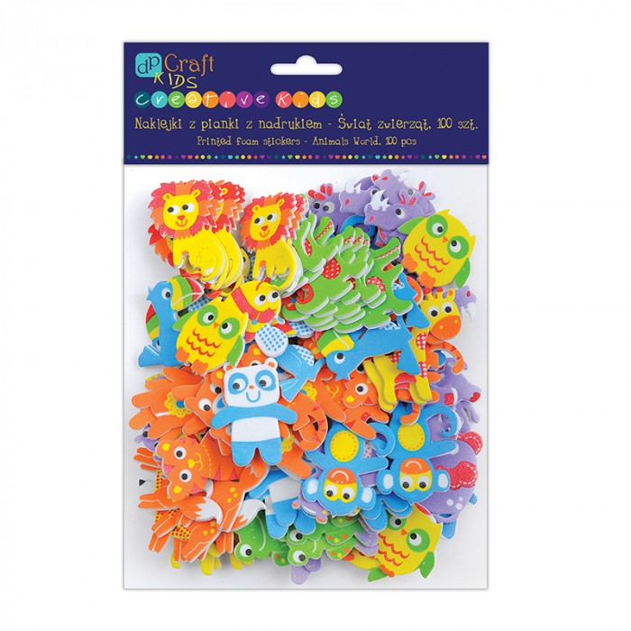 - Drukowane naklejki z pianki z motywami zwierząt, w kilku wzorach i kolorach. - Świetnie nadają się do wszelkiego rodzaju dziecięcej aktywności twórczej, jak również do zdobienia projektów kreatywnych takich jak kartki okolicznościowe, albumy, pudełka, opakowania prezentów i wielu innych. - Ilość w opakowaniu: 100 szt. - Rozmiar: mix.