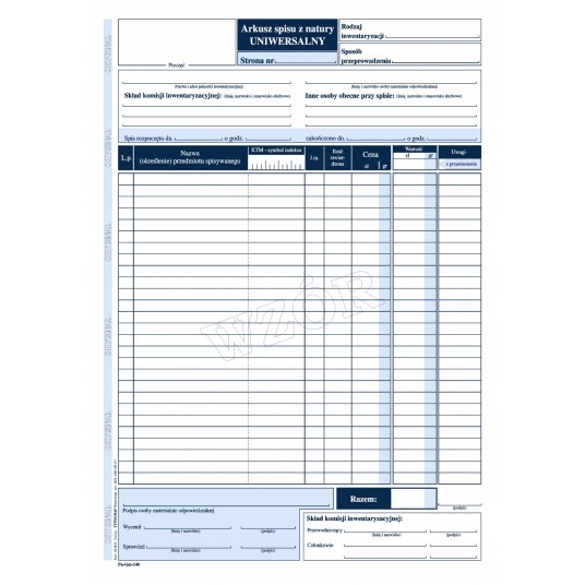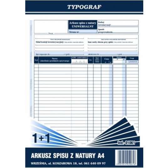 Druk arkusz spisu z natury 1+1 Typograf 40 kartek
