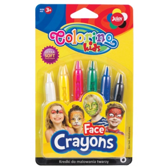 - Kredki do malowania twarzy w 6 intensywnych kolorach. - Idealne na zabawę karnawałową, przyjęcia urodzinowe, wydarzenia sportowe. Specjalnie opracowana formuła sprawia, że kredki są bardzo miękkie, więc łatwo się je nakłada. - Dzięki plastikowej obudowie kredki nie brudzą rąk. - Bezpieczne dla skóry. - Zmywalne za pomocą wody i delikatnego mydła. - Zestaw 6 kredek.